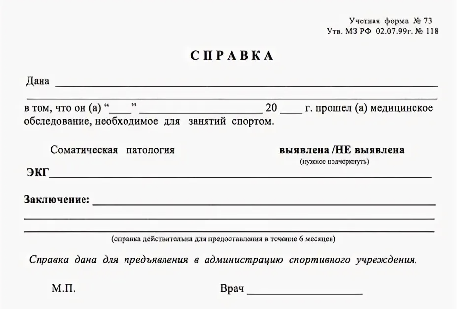 Медицинская справка, подтверждающая отсутствие у поступающего противопоказаний для освоения программы спортивной подготовки (по форме)